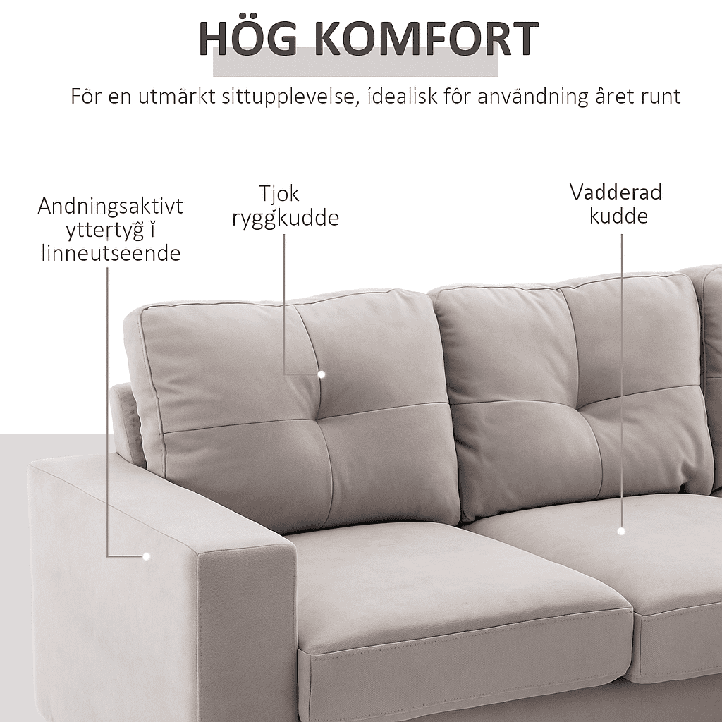- Komfort: Mjuk sits- och ryggstoppning för optimal komfort. Örngott är avtagbara och tvättbara för enkel skötsel.
