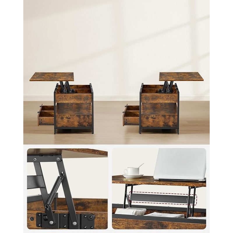 Stabil lyftfunktion med kvalitetsgångjärn i metall och förstärkta tvärstänger – bordsskivan lyfter mjukt och klarar upp till 20 kg i upphöjt läge