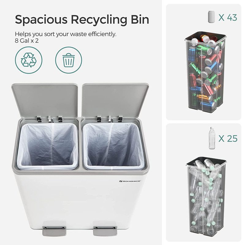 Enklare sortering med 2 separata fack (2 × 30 L) och två pedaler för smidig källsortering utan att röra locket