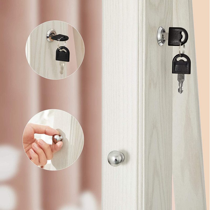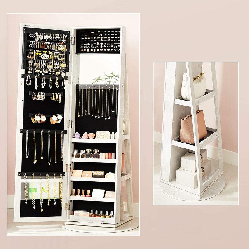Kombinerar helkroppsspegel med praktiskt smink- och smyckeskåp i ett
