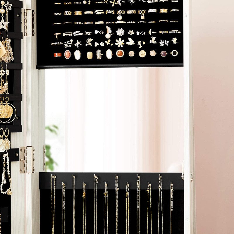 Rymlig insida med plats för ringar, halsband, klockor, armband och andra accessoarer
