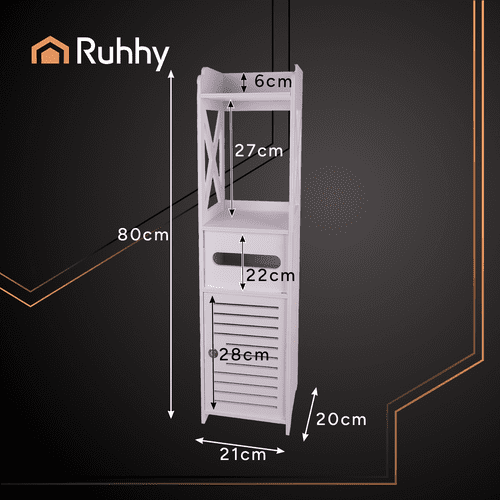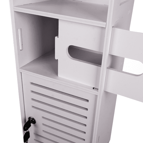 Tack vare sin smala, stående konstruktion passar det perfekt intill toaletten och skapar smart förvaring där det annars bara finns tomrum.