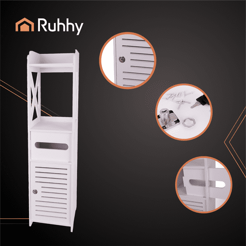 Skapa ordning i badrummet på sekunder. Detta stående badrumsskåp kombinerar modern design med funktionell förvaring och ger dig allt du behöver – toalettpappershållare, hylla och praktisk förvaringslucka – på en och samma plats.