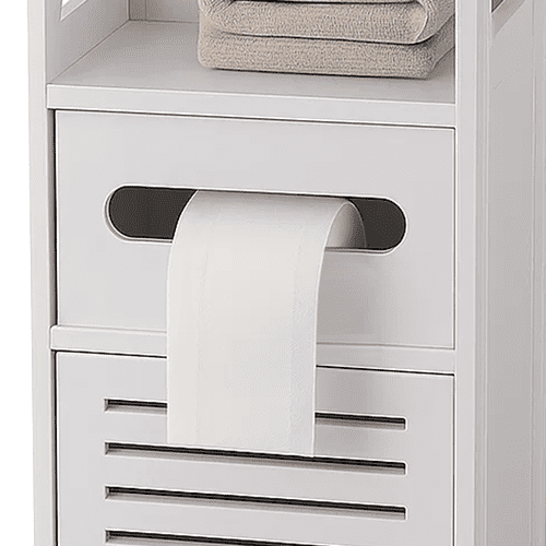 Tack vare sin smala, stående konstruktion passar det perfekt intill toaletten och skapar smart förvaring där det annars bara finns tomrum.