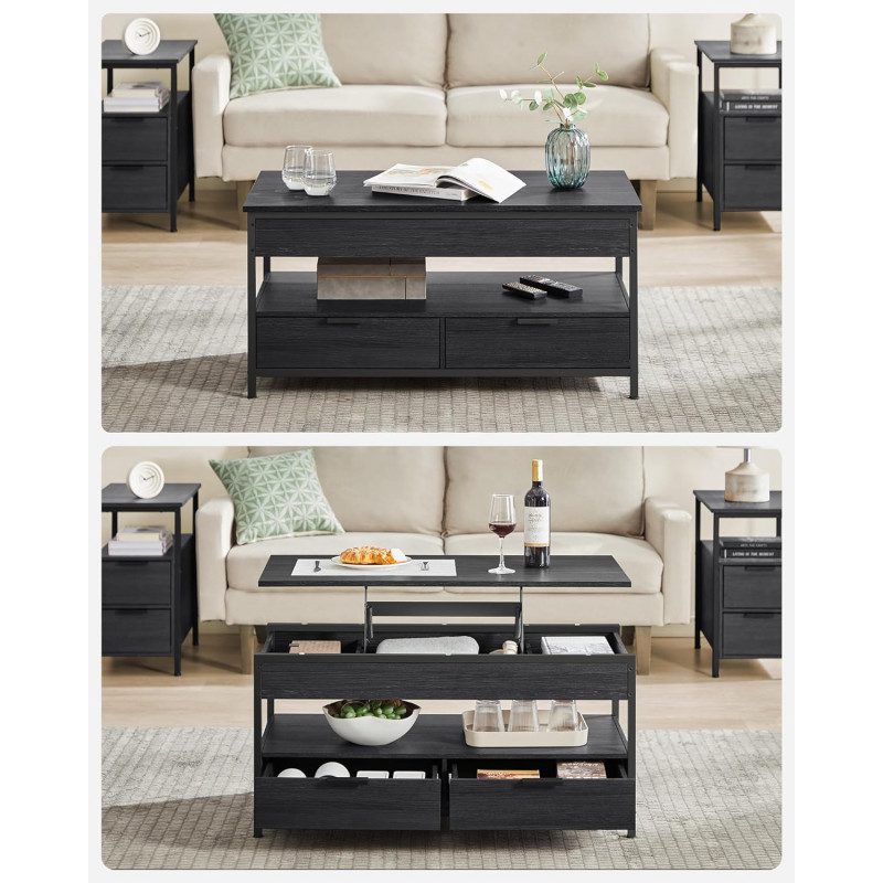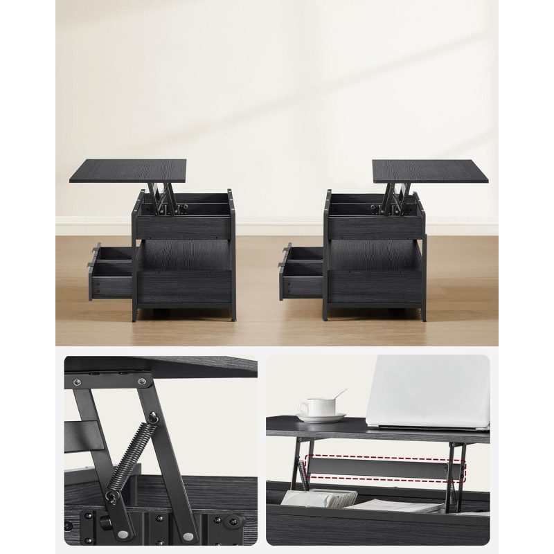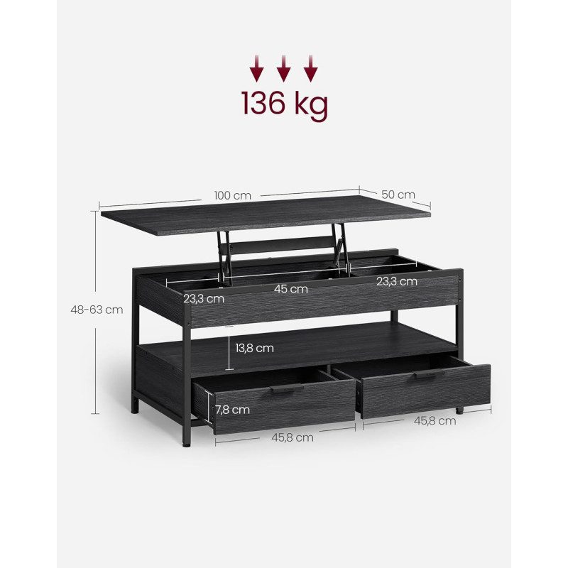 Lift-top-design där bordsskivan enkelt justeras i höjdled från 48 cm till 63 cm för arbete, måltider eller spel från soffan