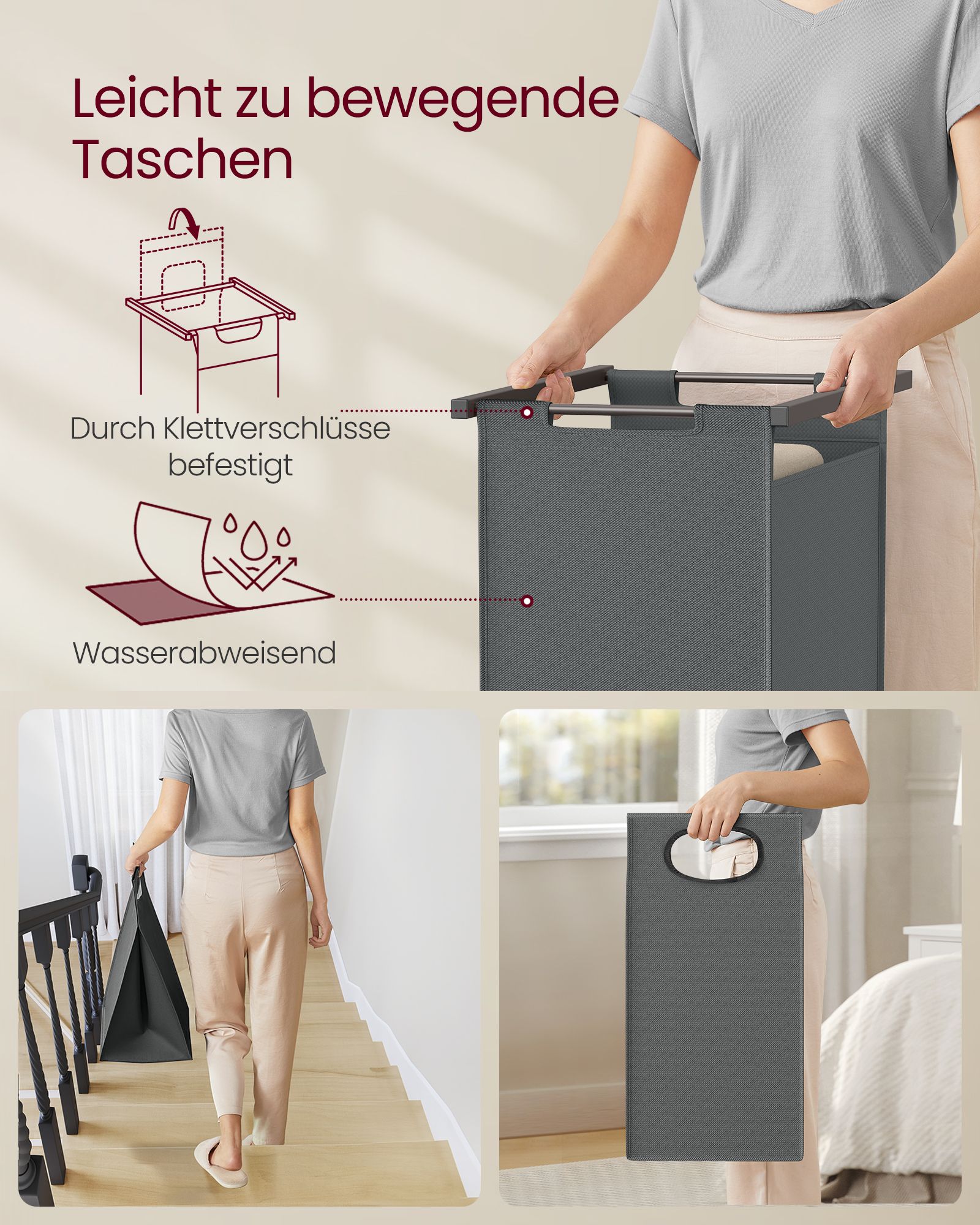 Stabil konstruktion i stål och spånskiva med slitstarka tvättpåsar i Oxfordduk