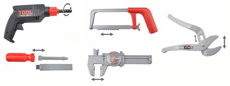 ✔ Realistiska verktyg med funktioner – rörliga tänger, skiftnyckel, borr med rotation m.m.