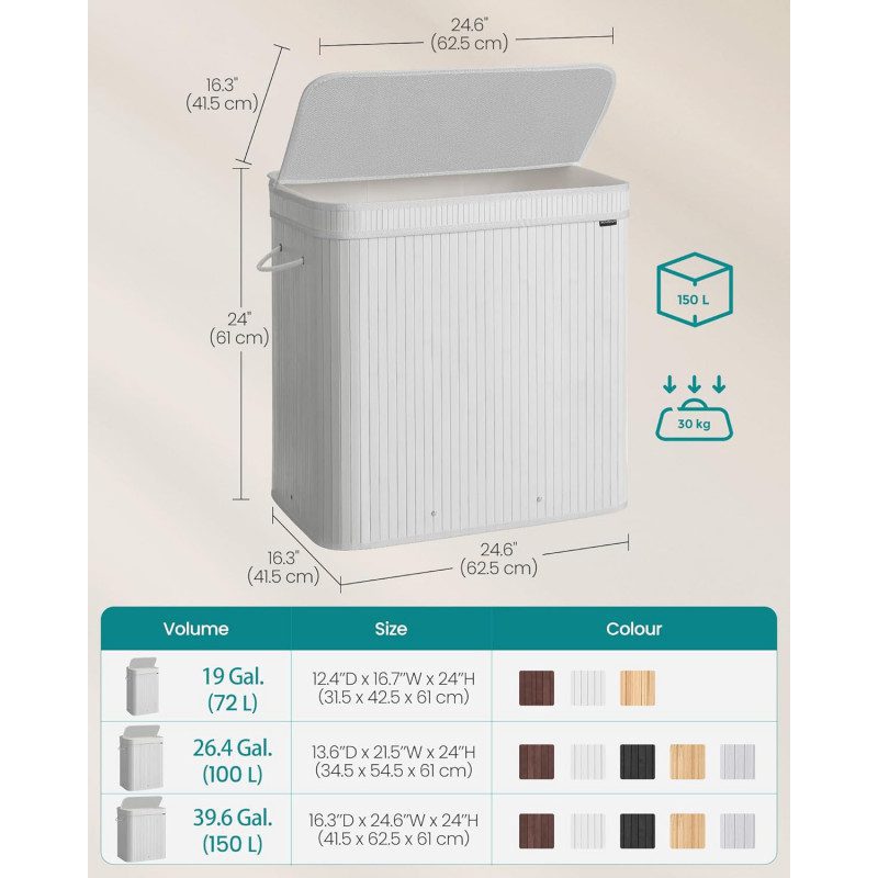 ✔ Stor kapacitet på 150 L – med måtten 41,5 × 62,5 × 61 cm erbjuder korgen en generös volym på 150 liter.