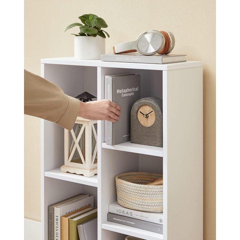 Modern bokhylla i molnvit finish som kombinerar stil och förvaring utan att kompromissa med inredningen
