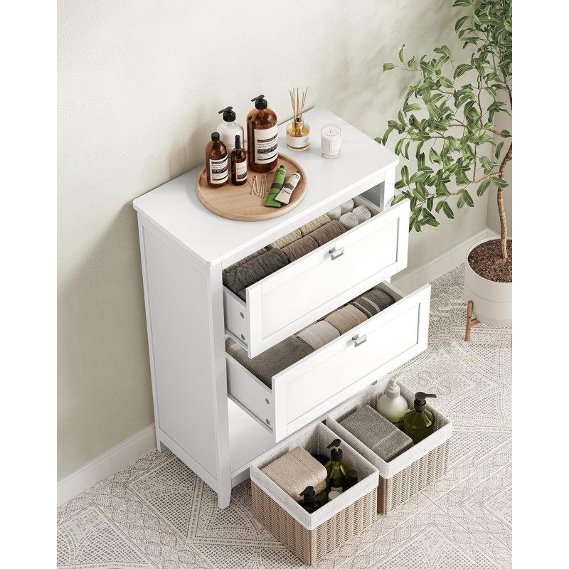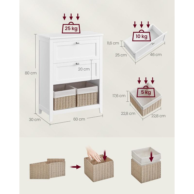 Rymlig förvaring med 1 hylla, 2 stora lådor och 1 öppet fack med 2 syntetiska rottingkorgar