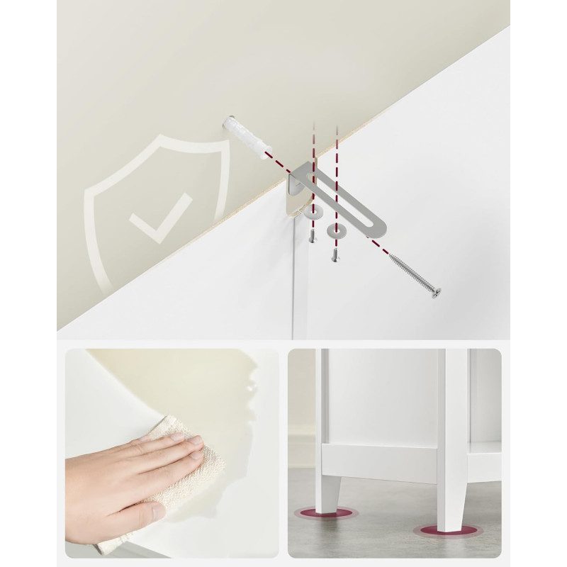 Tippskydd ingår för att kunna fästa skåpet i väggen och öka säkerheten