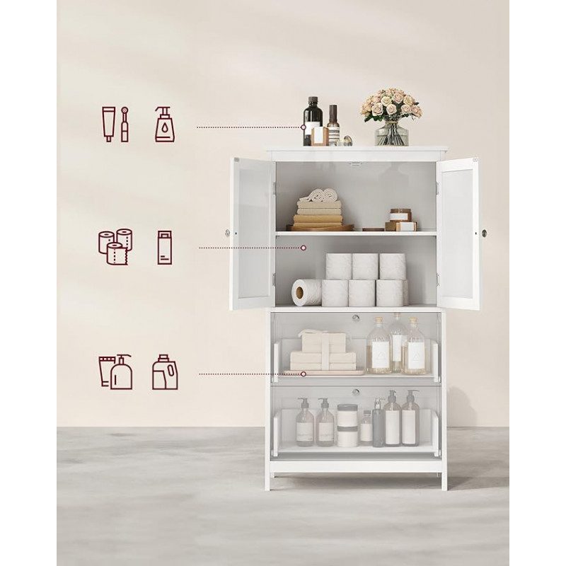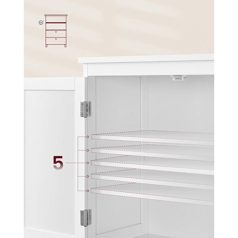 Flexibel förvaring bakom dörrarna med en hylla som kan justeras i 5 höjdlägen för att passa olika typer av produkter