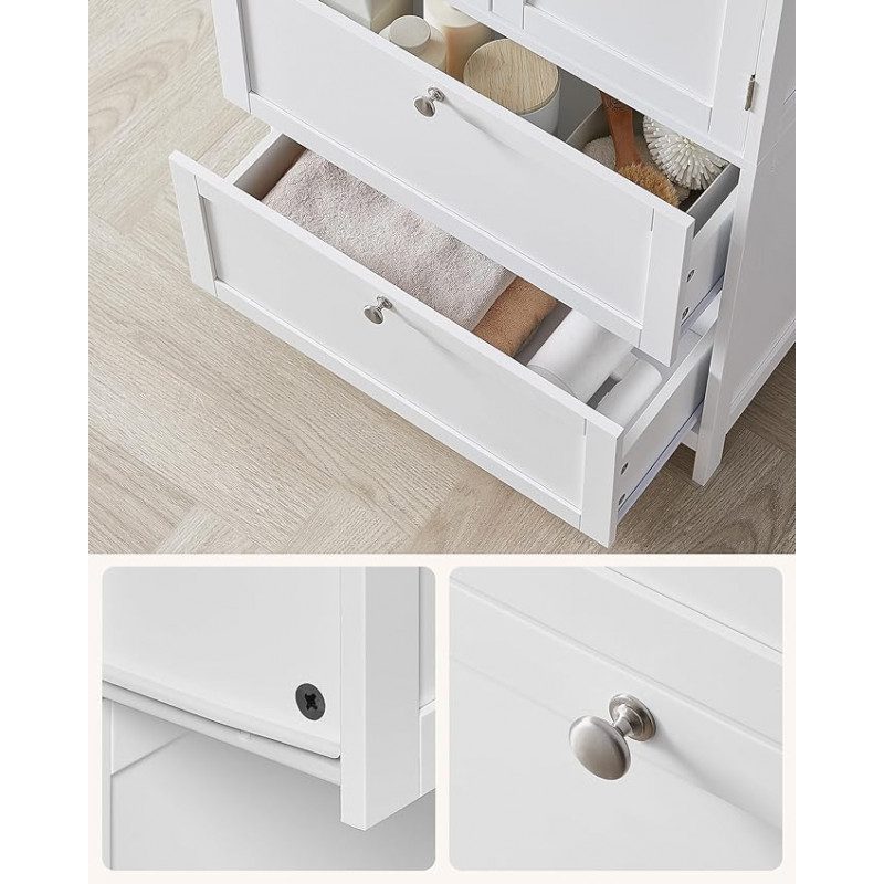 Vitt badrumsskåp med 2 lådor + 2 rottingkorgar, 60 × 30 × 80 cm